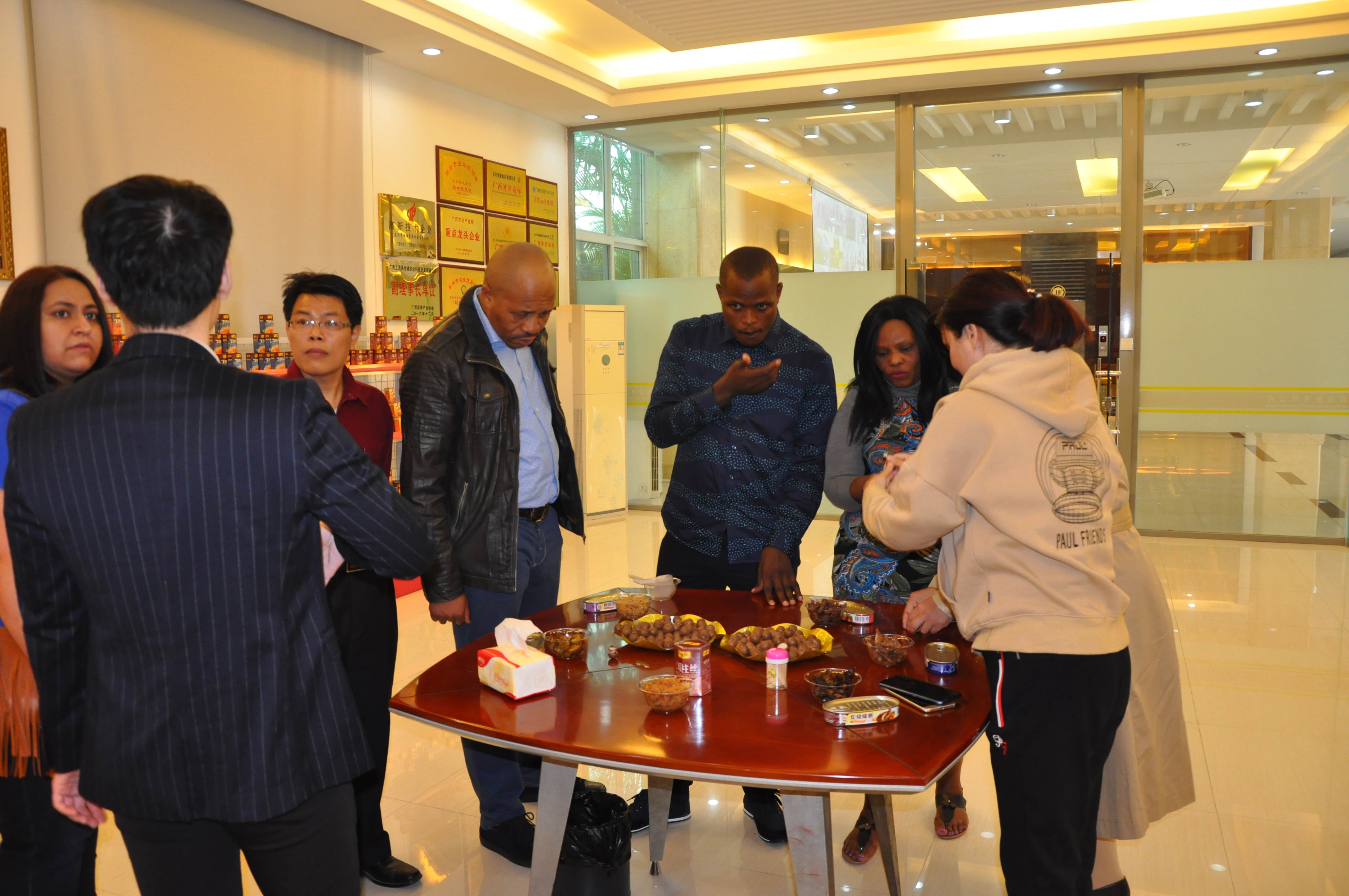 本月南非奧克拉瑪市政府致函防城港市政府,雙方互道禮節(jié)性問候,并在防城港市政府的邀請(qǐng)下派出代表團(tuán)一行8人到訪。代表團(tuán)依次游訪防城港市各主要經(jīng)濟(jì)產(chǎn)業(yè)區(qū)后,于12月7日由奧克拉瑪市市長(zhǎng)Mlungisi Ndlangisa率團(tuán)蒞臨怡誠食品公司參觀。