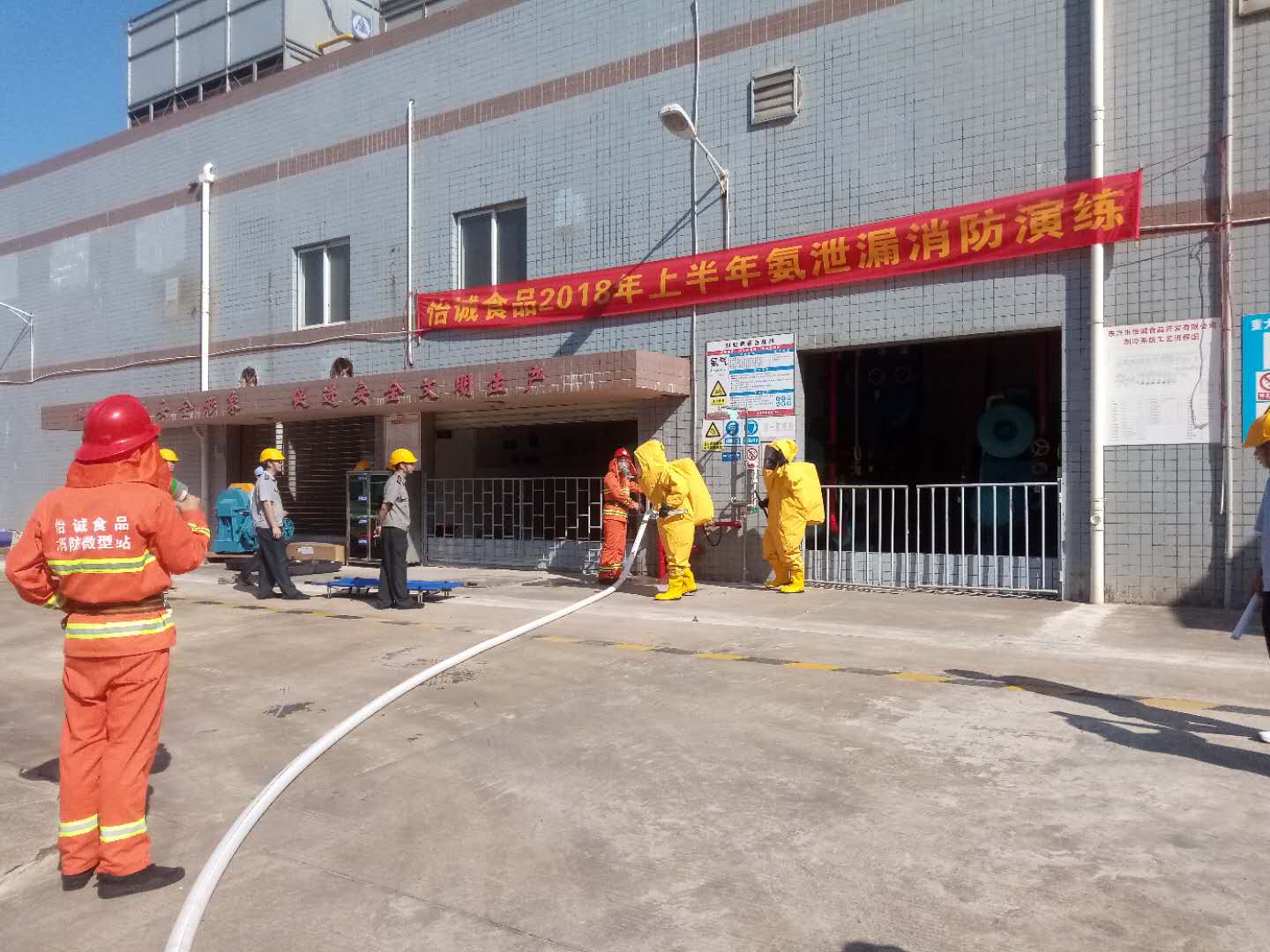 5月20日,由公司安全負(fù)責(zé)人、總經(jīng)理辦公室下發(fā)方案,企業(yè)黨支部動(dòng)員,安全環(huán)保工程部組織,氨制冷動(dòng)力部門,人事行政部門,后勤安保應(yīng)急隊(duì)伍協(xié)助聯(lián)合舉行的大型液氨泄漏消防救援應(yīng)急演練取得了顯著的效果。演練活動(dòng)針對(duì)液氨泄漏處理,消防搶險(xiǎn)救援,應(yīng)急隊(duì)伍協(xié)作機(jī)動(dòng)性,人員疏散組織四個(gè)重點(diǎn),進(jìn)行了高標(biāo)準(zhǔn)的強(qiáng)化訓(xùn)練。演練過程中安全環(huán)保工程部根據(jù)現(xiàn)場狀況臨時(shí)加入突發(fā)事件元素,鍛煉應(yīng)急隊(duì)伍的緊急應(yīng)變能力。對(duì)防化服、空氣呼吸器穿戴、滅火器具、各類消防器材使用等方面,不僅要求應(yīng)急隊(duì)伍能有效準(zhǔn)確地運(yùn)用器材,而且操作反應(yīng)速度要達(dá)到設(shè)定的標(biāo)準(zhǔn),對(duì)器材的使用熟練性進(jìn)行了嚴(yán)格的考驗(yàn)。